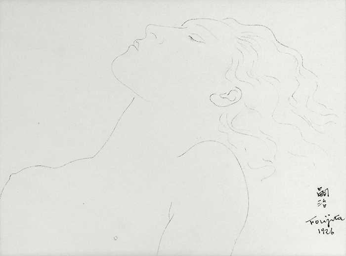 藤田 嗣治「眠る裸婦」 18.9×25.5cm 墨、紙