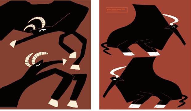 左:《cattle 2》 606*500mm 右:《goat》 606*500mm すべてacrylic on canvas
