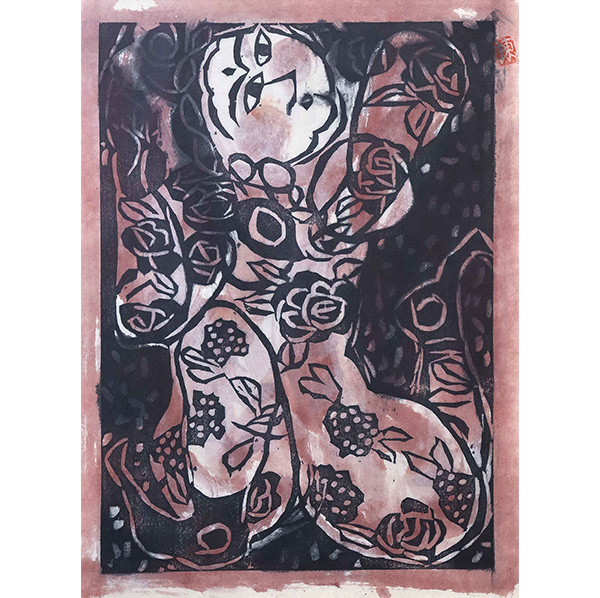 棟方 志功 「朝菊の柵」 板画 493×360mm 棟方志功鑑定委員会鑑定登録証