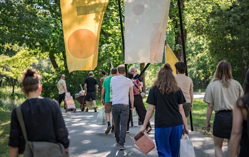 「東京ビエンナーレ」は、東京のまちに国内外から多様なアーティストやクリエイターが集結し、まちに深く入り込み、地域の方々と一緒に作り上げていく2年に1度の国際芸術祭。3回目の今回は「いっしょに散歩しませんか?」をテーマに、まちを歩く芸術祭としての魅力を探究する。東叡⼭寛永寺、エトワール海渡リビング館の2つの拠点展⽰のほか、6つのエリア(上野・御徒町/ 神⽥・秋葉原・⽔道橋/ ⽇本橋・⾺喰町/ ⼋重洲・京橋/ ⼤⼿町・丸の内・有楽町)に39組のアーティストが作品を展開する。