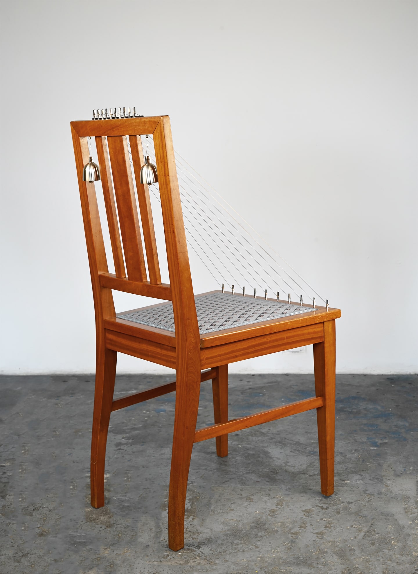 ネヴィン・アラダグ《音楽室:椅子、糸、ベル(ダルムシュタット音楽室より)》2025年 Courtesy Galerie Krinzinger