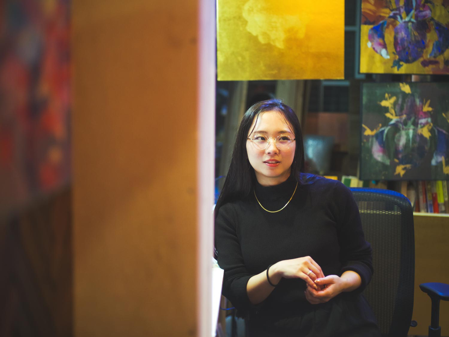 「筆跡を残し、色合いが跳ねる表現を使うことで、画面の前で息づいた一瞬一瞬を形に残したいと考えています。自分が動いた軌跡を作品に残すことを意識して描いています」