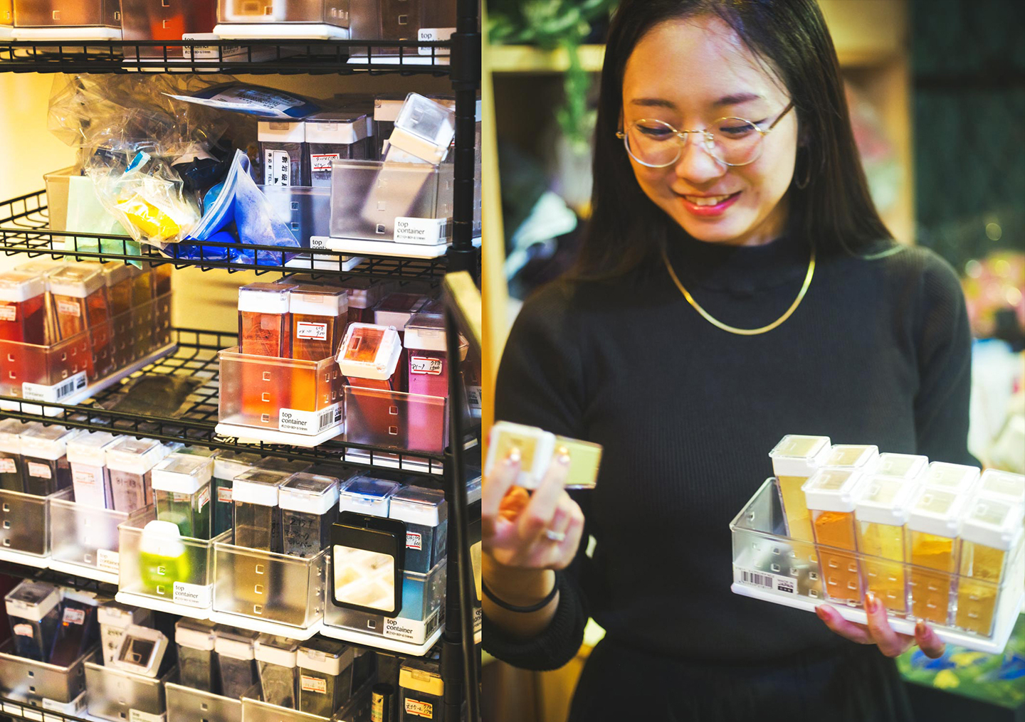 さまざまな種類の岩絵具を扱うので、ダイソーさんのコショウ入れに岩絵具を入れて並べて保管しています。とても使いやすく、見た目も綺麗でお気に入りです。