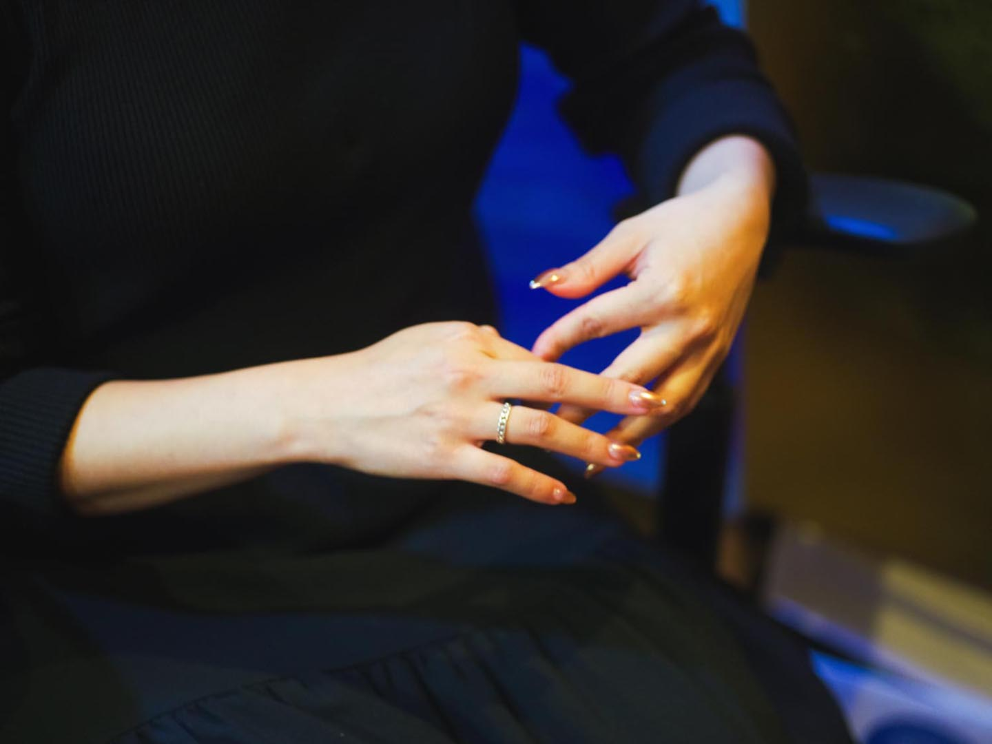 あまり画家らしくないと言われますが、ネイルをするのが好きで、特に最近は光を乱反射させるマグネットネイルやミラーネイルにはまっています。岩絵具の粒子による光の乱反射と同様に、光の反射が強く刺激的な素材が好きなのだと考えています。