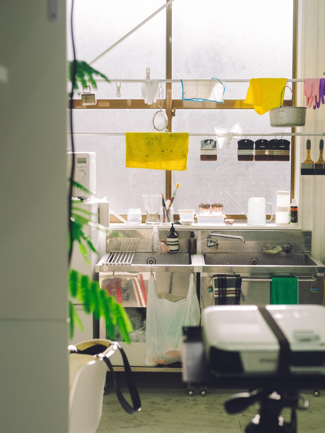アトリエは天井が高いことがこだわりです。空間の抜けがあると気持ちも解放されますし、天井が高いとアイデアが出やすいと聞いたことがあります。アトリエは余計な色が視界に入らないように、なるべく空間全体を白で統一しています。
