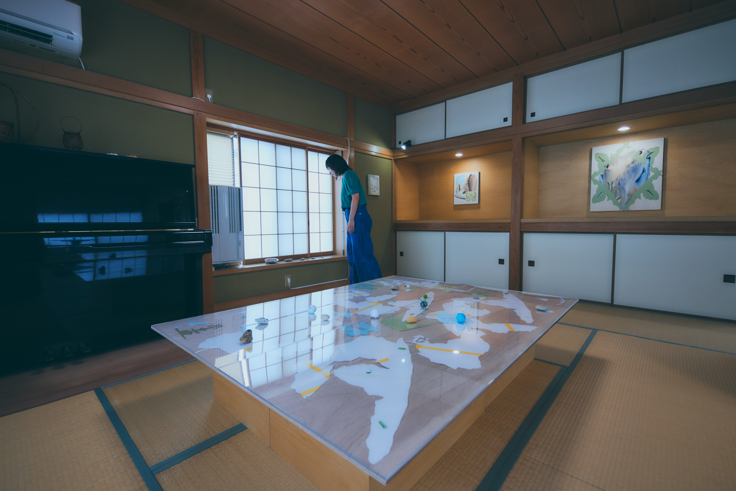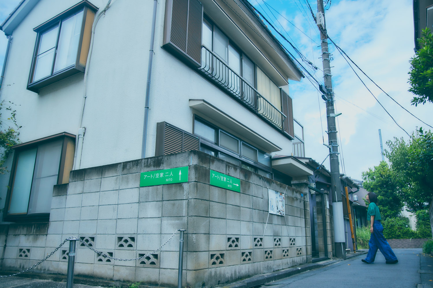 しばらく歩いて、住宅街に入っていくと、ごくふつうの一軒家があり、そこが「アート/空家 二人」なのだった。二人、とかいて、にと、と読む。壁は少し色あせ、窓枠は実家のようでなつかしい。玄関を開けると、生活の空気が流れてきた。誰かがここで長く暮らしていた時間が、そのまま残っているようだった。