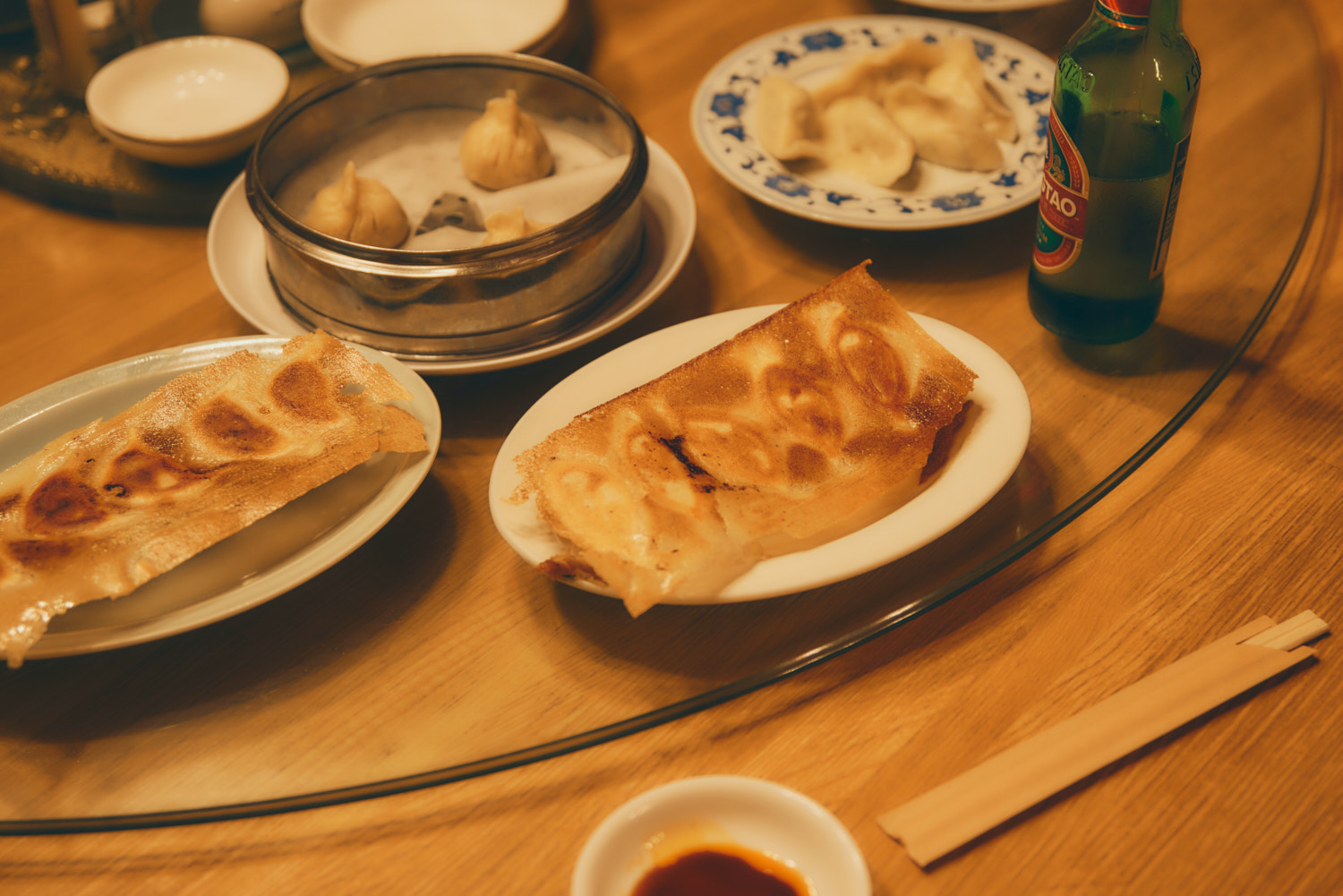 勉強のかたわら、友人たちに料理をふるまった。包丁の音、湯気の立ちのぼる匂い。皿の上の湯気。その食卓の中で、いちばん人気があったのが餃子だった。中国では水餃子が主流だが、日本では焼き餃子が好まれると知り、八木さんは焼き方を研究したという。どうしたら、もっと美しく焼けるか。何度も何度も試した。火加減、粉のかたさ、水の量。小さな失敗を積み重ねて、ようやく羽根が広がった。そうして生まれたのが、いま目の前の羽根つき餃子である。
