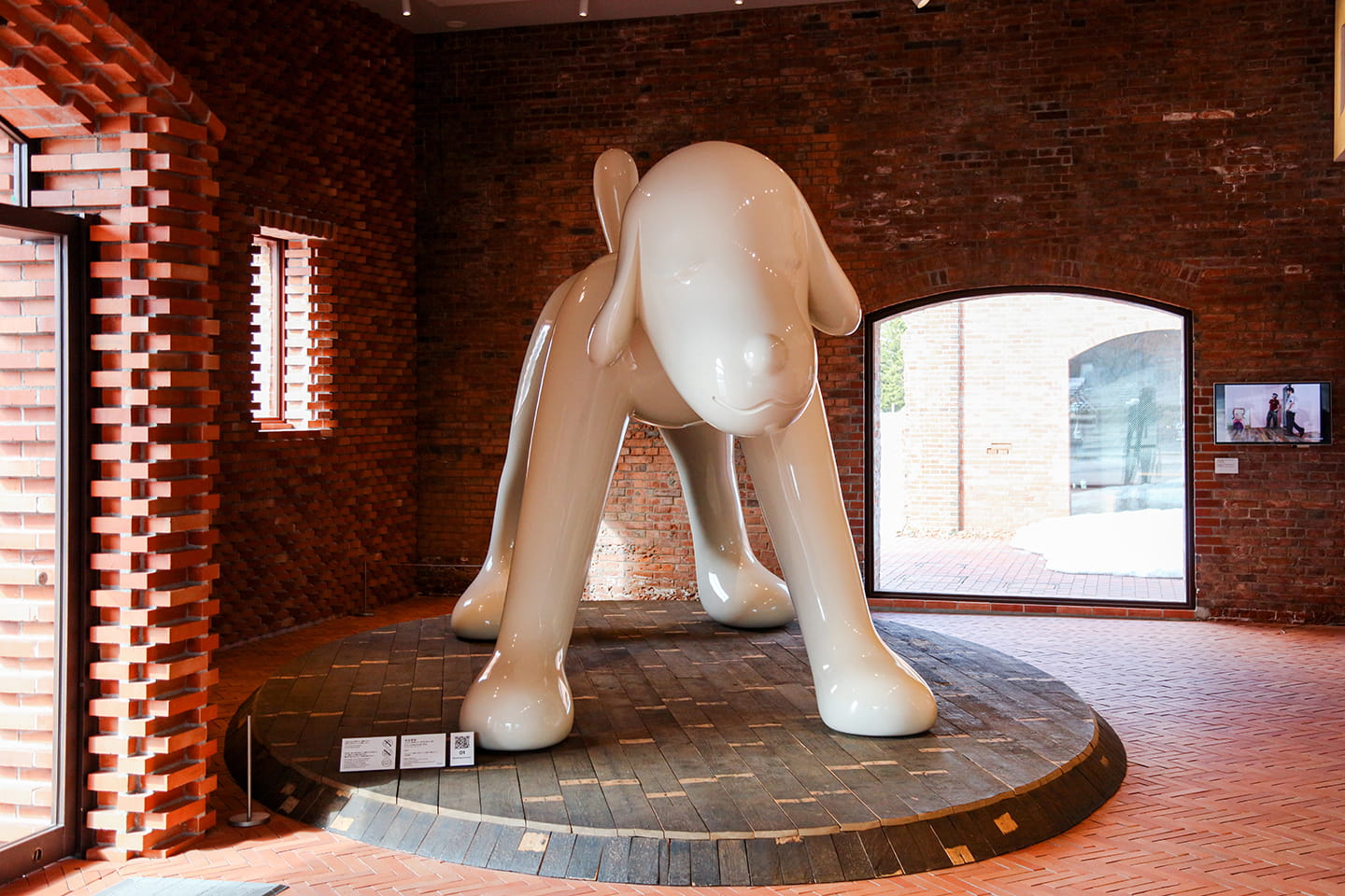 館内に入ってすぐ、奈良美智《A to Z Memorial Dog》が現れる ©︎Yoshitomo Nara