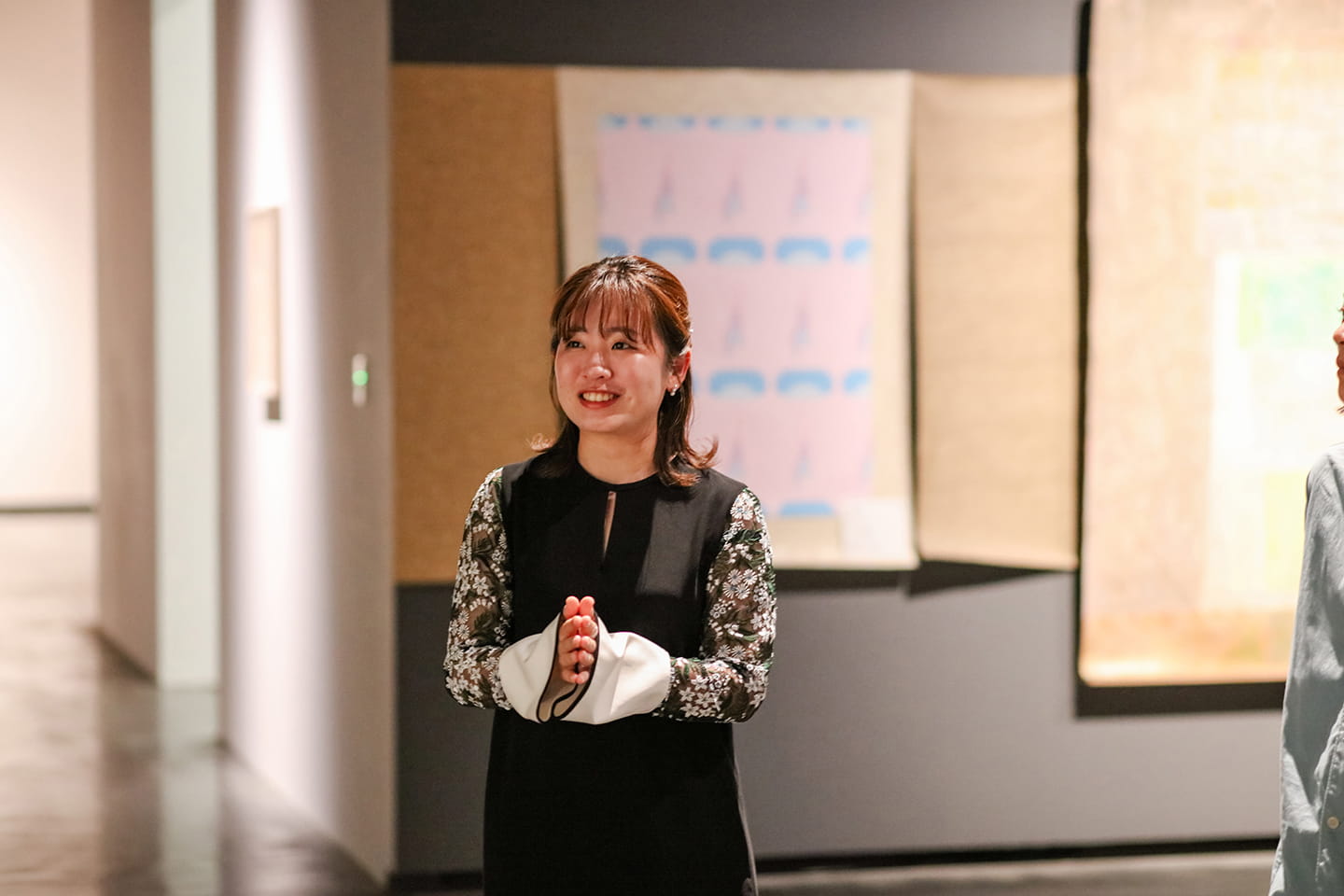 くどうさんは弘前れんが倉庫美術館のアシスタント・キュレーターの案内のもと館内を回った