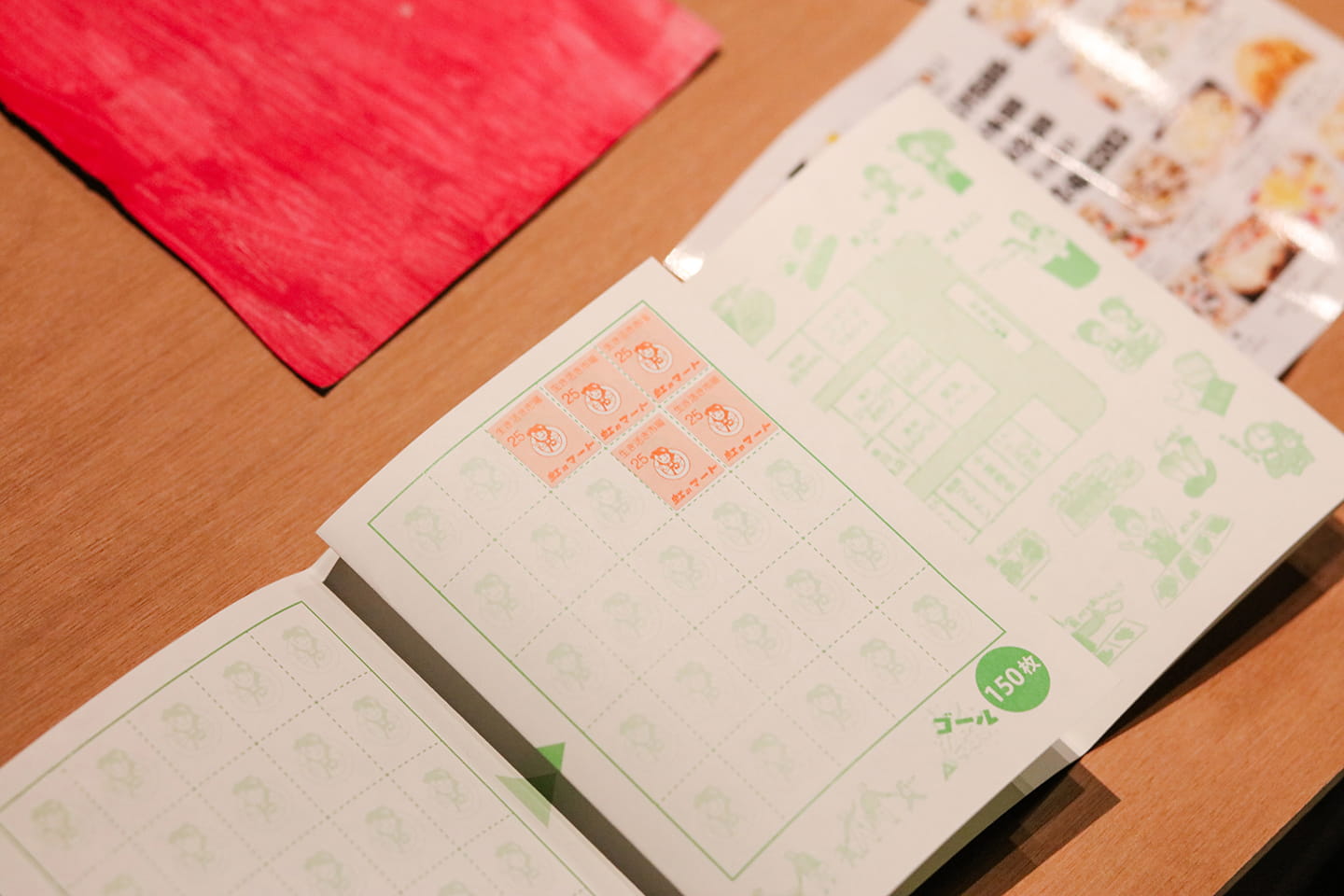 制作現場のテーブルに置いてあった弘前市で人気の虹のマートのシール
