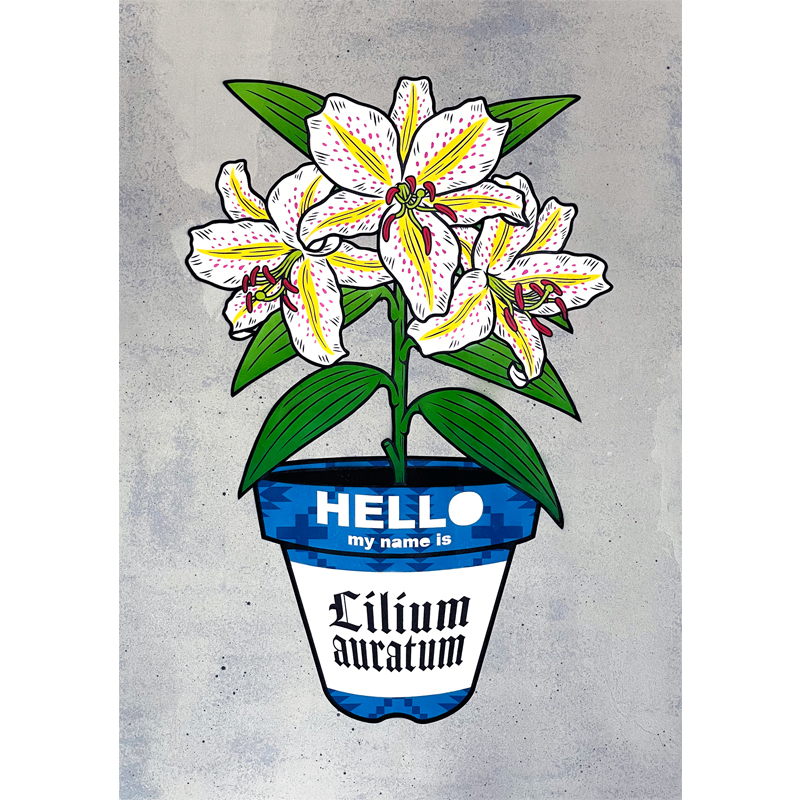 グラフィティやスケートボードなどのストリートカルチャーをルーツに、ライフスタイルの中心となっている植物を融合させた作品を制作。作品は主にステンシルやシルクスクリーンで、 製版から刷り上げまで一貫して行っていながら、朽ちることのない美しい植物を再現している。今回はそんな彼がコレクションしている植物を見せてもらった。