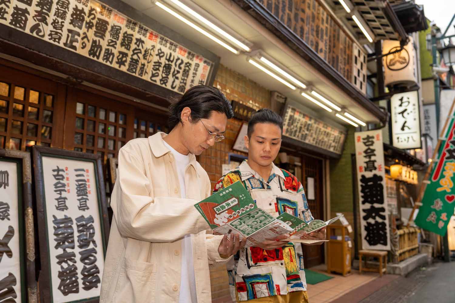 寄席を見物したあとは、末廣亭からすぐの居酒屋、どん底へ。1951年に創業されたどん底は、文学界や演劇界、映画界などから数々の人々がサロンのように集い、新宿の文化をつくってきた場所の一つ。歴史あるこの場所でお酒を酌み交わしながら、二人にお話を伺いました。