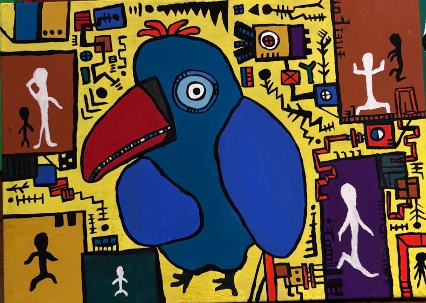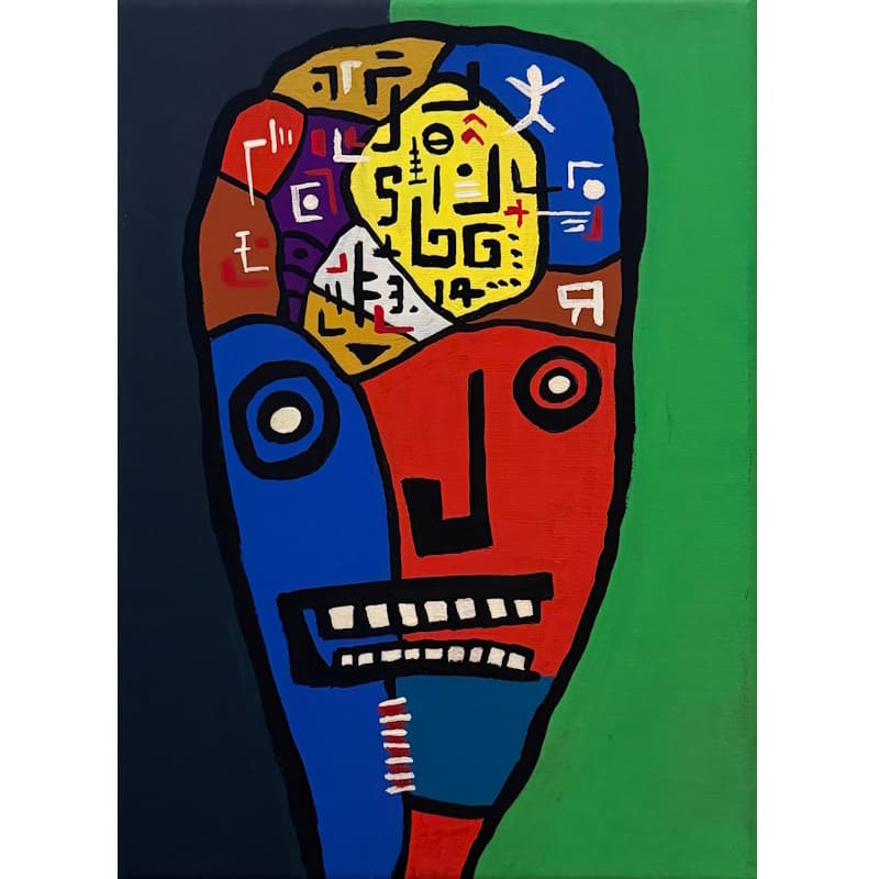 また、これまでの作品はすべて水墨画で描いてきたけど、絵画表現においてはアクリルで描いています。水墨画はぼかしやにじみなどが意図せず生まれることに魅力を感じているけれど、それがわかっているうえでアクリルで描くと、僕としては何か、文章表現に近いものを感じるんですよね。アクリルは当然ながらカラフルだし、よりストレートに表現できるので、僕としてはすごく理屈っぽく描いている感覚があります。