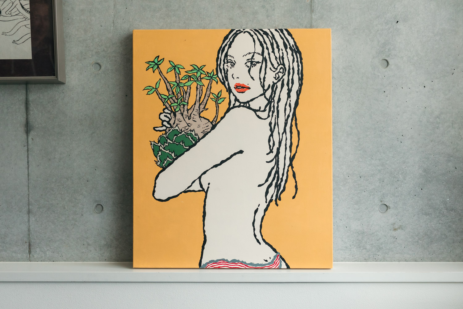 そうしてお迎えしたのが、この作品なんです。はじめて購入したアート作品が木久扇カラーの黄色だったのは、うれしい偶然でした。