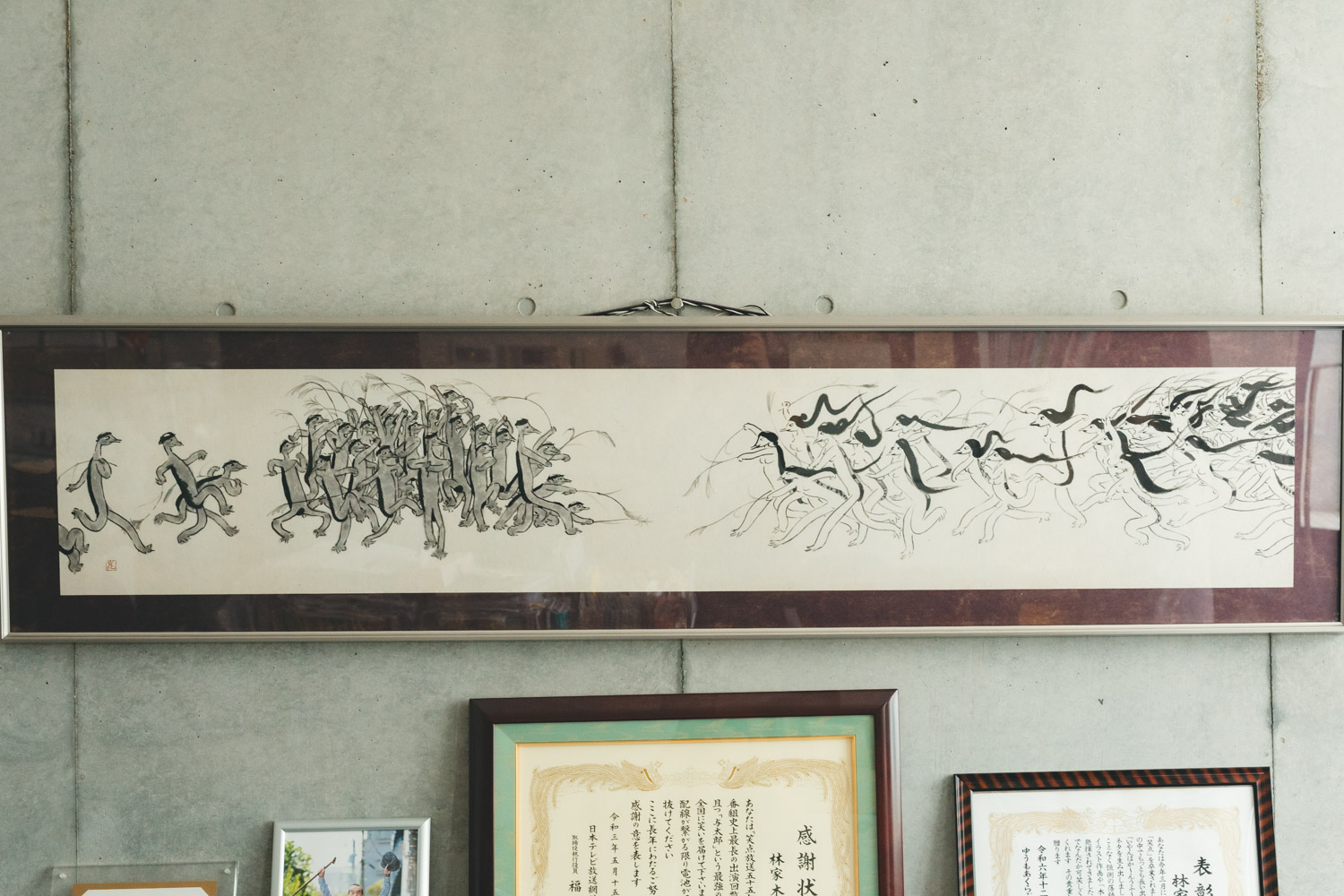 木久蔵さんの事務所には、父・木久扇さんが購入した清水先生の河童の絵が飾られている。このような横長の作品は珍しいとか