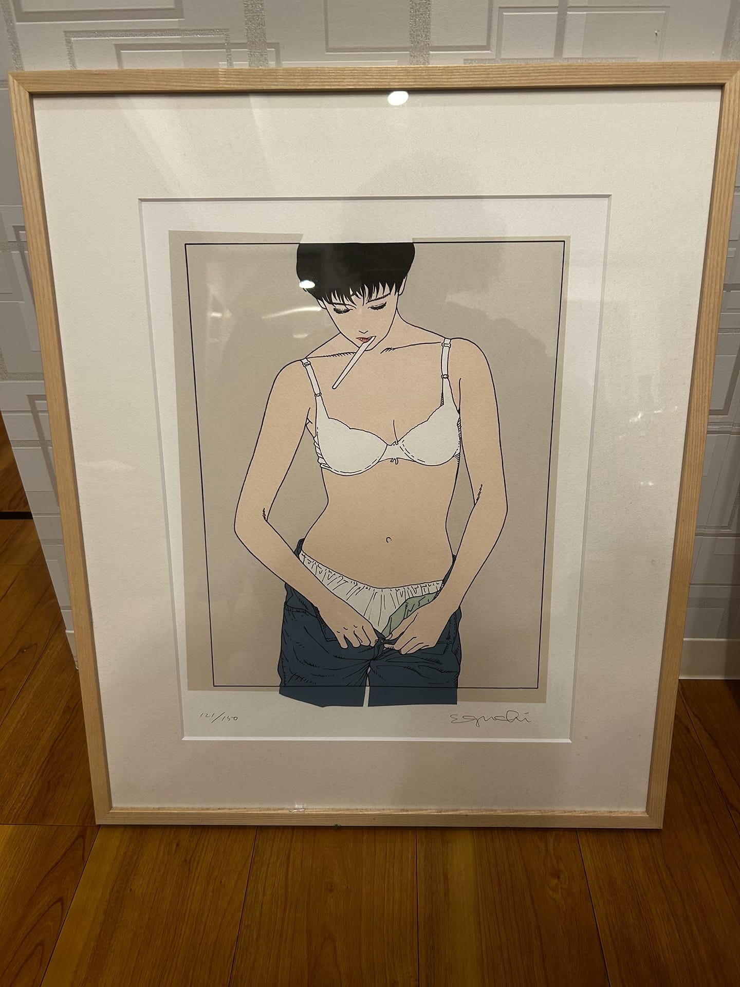 というのも、飾ってみたら、「なんかいいな」ってテンション上がっちゃったんですよね。それで、もう一個ほしい、もう一個飾りたいってなって、永井さんの作品を購入してすぐに江口寿史さんの版画を購入しました。自分の中で唯一ちゃんと「知っている」と言えるのが、永井さんと江口さんだったので。