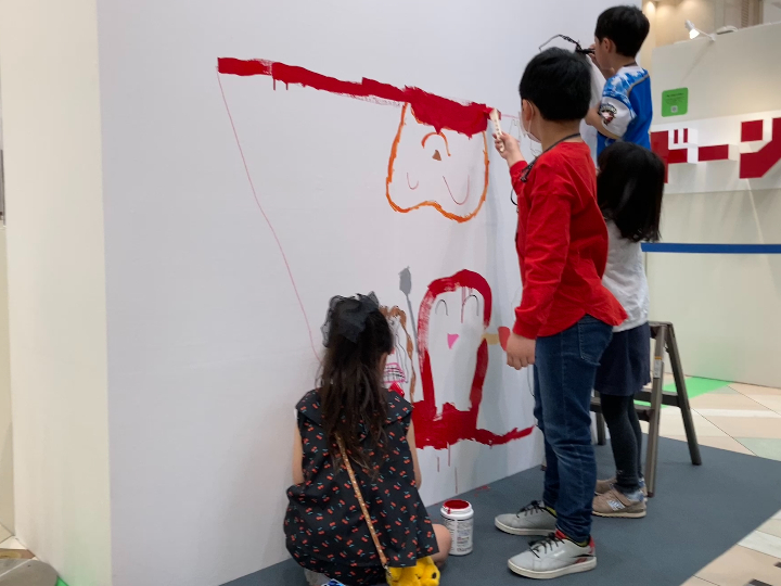 今回のライブペインティングは子どもたちと一緒に6月4日「虫歯予防デー」にちなみ「歯」をテーマに描いていただきました。
