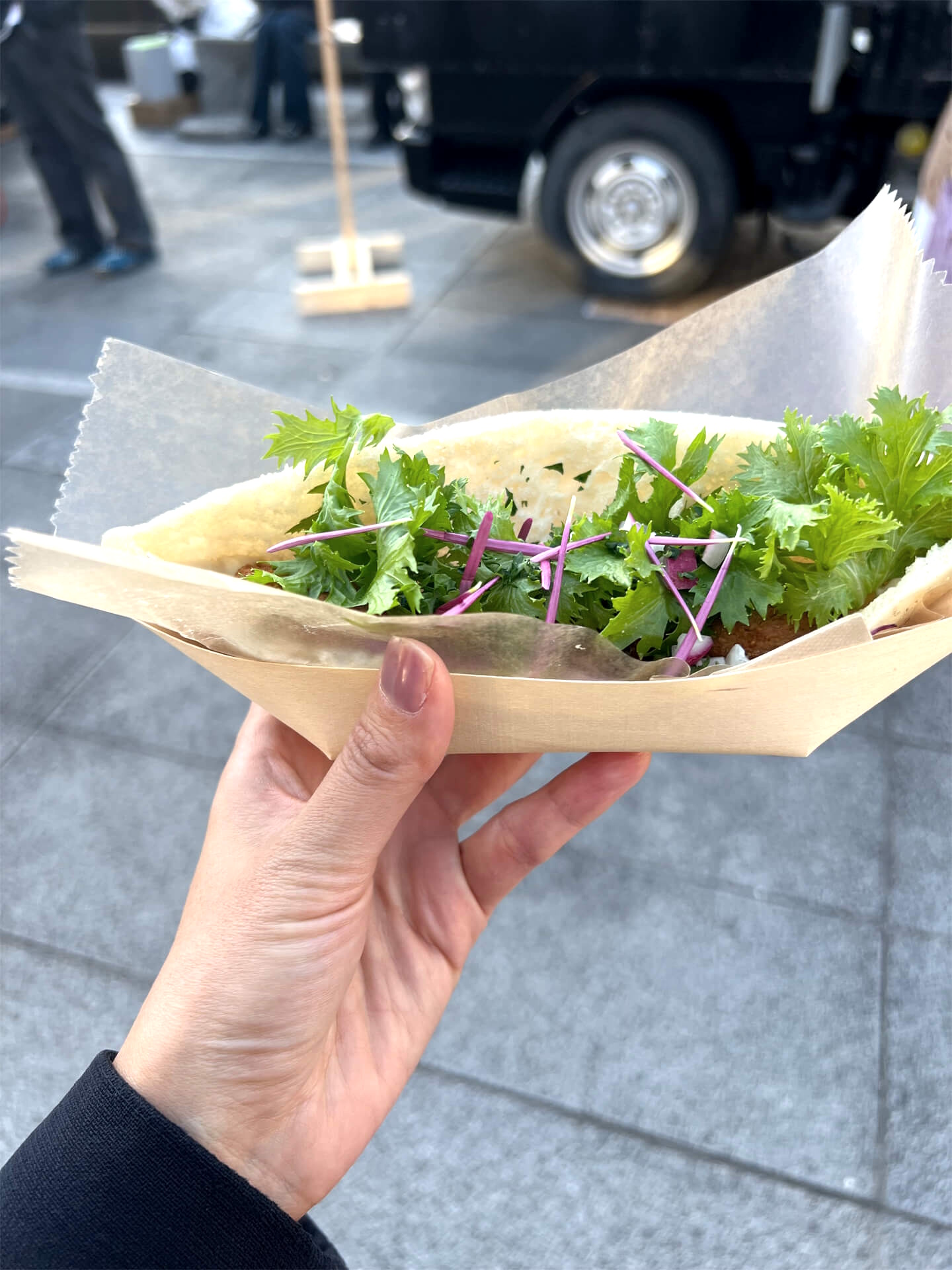 小腹が空いて見廻せば、美味しそうなヴィーガン・ピタサンドのフードトラックが。料理人yoyo.によるナチュラルワインと妄想中東料理のお店mountain groceryのお料理をここ東京で食べられるとは!