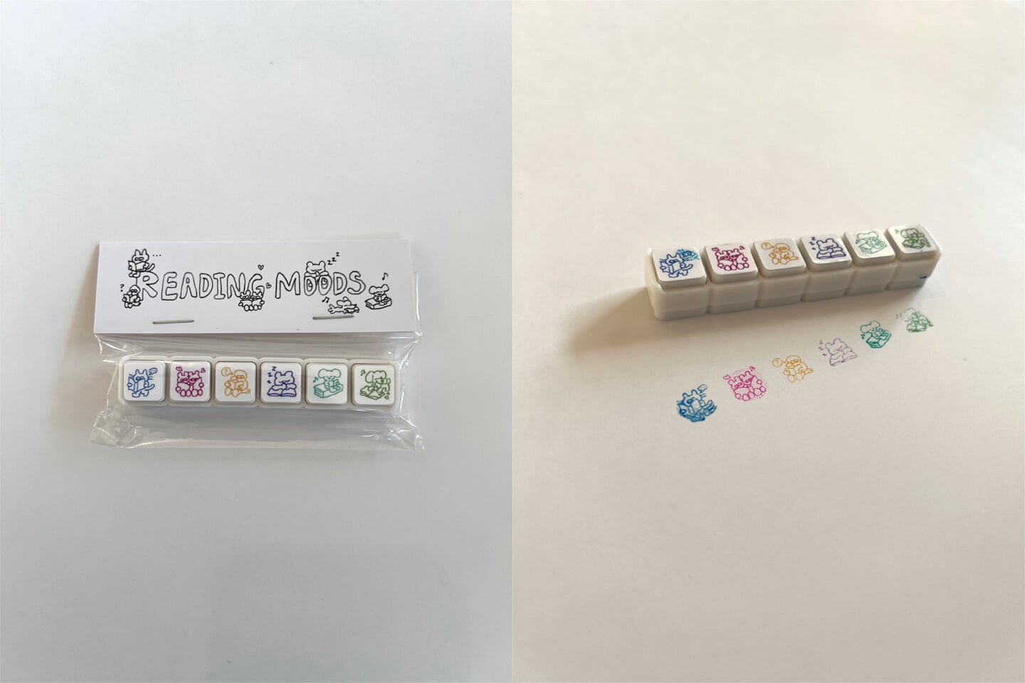 本を買い漁るのに夢中になりすぎたところで、しばし一息、中国・瀋陽のインディペンデントアートブックストア「kaleidoscopestore」がつくる韓国のアーティスト、Bird PitことSeungwhan Kimの「READING MOOD」(読書気分)スタンプを。いちいち全部可愛くて、本好きにはたまらない品。私もしょっちゅう押したい。