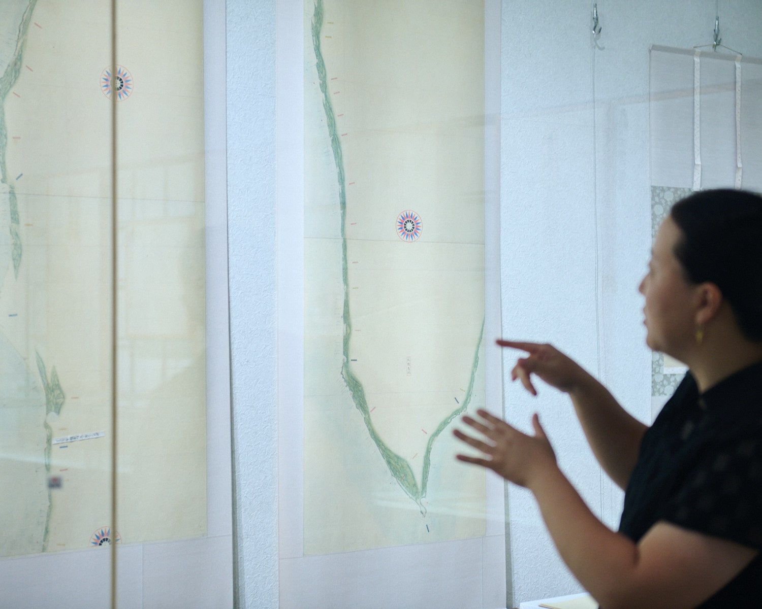 間宮林蔵が残した樺太の地図。「線の細さもとても印象的で日本画のようにも見えます」