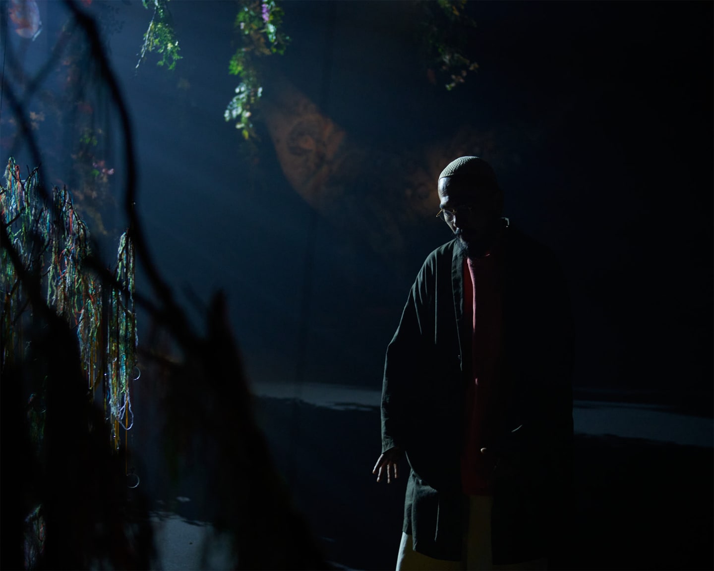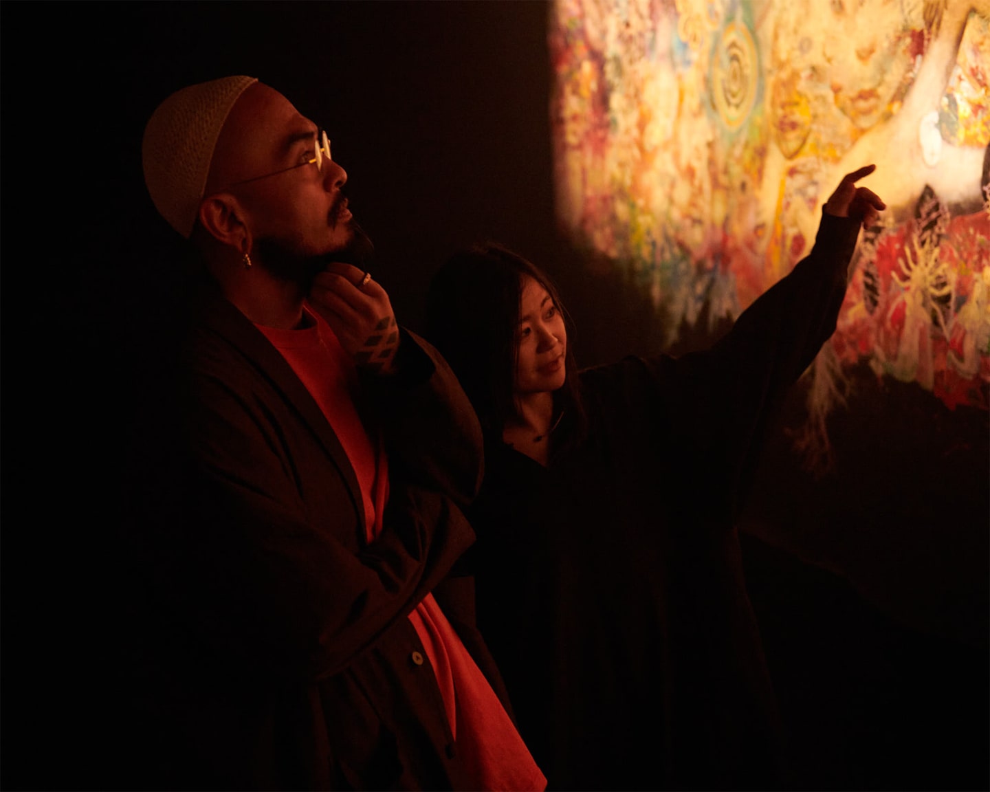 今回は横浜・KAAT神奈川芸術劇場で個展「あなたの胞衣はどこに埋まっていますか?」を開催していた、アートユニット・大小島真木。待ち合わせた展示会場に向かうと、真っ暗な場内に広がるのは、胎児の夢のような、あるいは冥府を思わせる神秘的な空間。それは「祈り」だと二人は語る。この作品には、昨年のメキシコ滞在中の出産経験が深く関係しているという━━幕間のひととき、作者である大小島真木さん、辻陽介さんに話をうかがった。