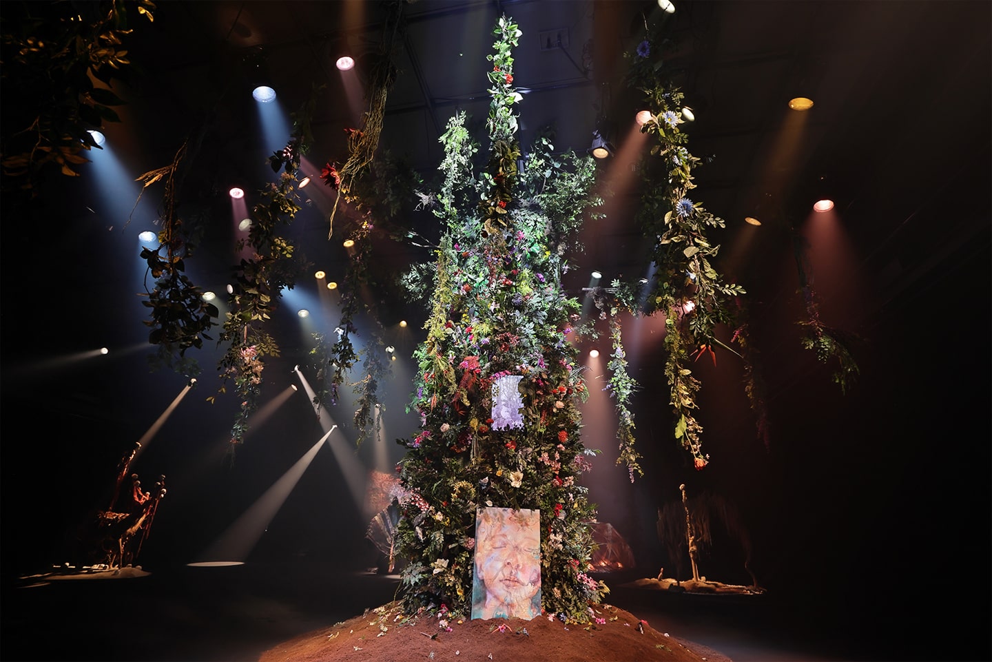 一方で、しばしば人は死ぬ前に過去の記憶が一瞬にして「走馬灯」のように駆け巡ると言いますよね。そうであるならば、世界が死ぬ時に世界にはどのような走馬灯が駆け巡るのだろうという問いもあった。だから、この空間は胎児の夢であると同時に死を前にした世界の記憶でもある。新しい命の誕生を祝福しながら、一方でこの世界そのものの死をあらかじめ悼むこと、その二重性が必要だと感じました。