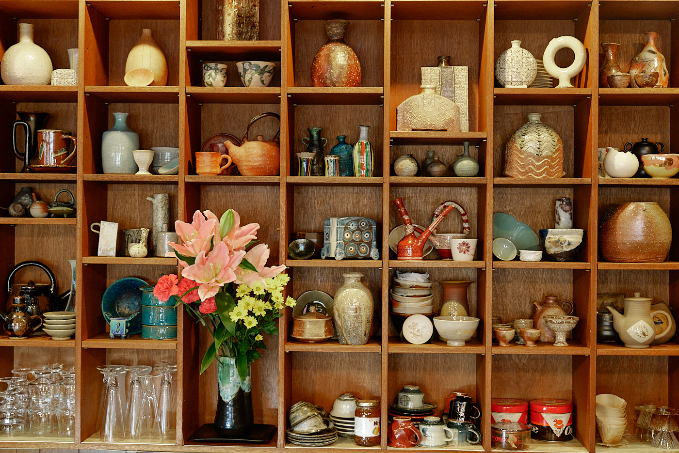お店には信楽の作家を中心に、陶芸の森に滞在していた海外作家の陶芸作品なども並ぶ