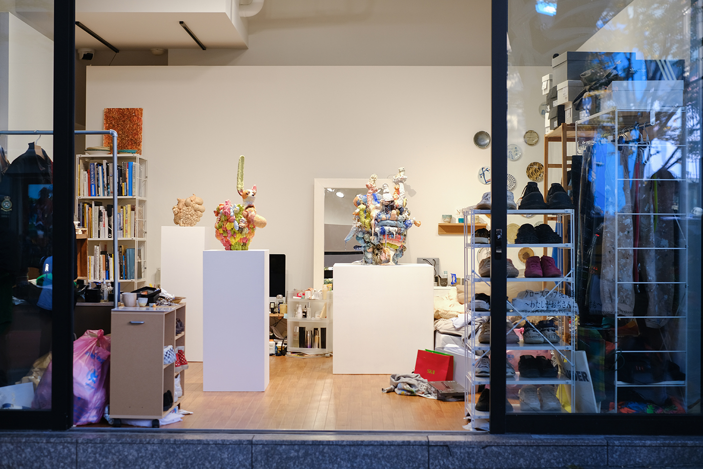 2024年に開催した展覧会「クローズアップ現代陶芸〜わたしがおぢさんになっても〜」の様子。川井さんの自宅を再現した展示空間には洋服や本などが至る所に並ぶ
