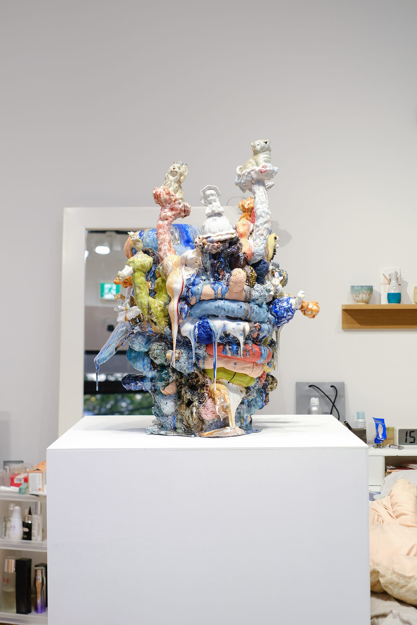 ロンドンで現代アートを学んだ後、茨城県笠間市を拠点に陶芸を制作するアーティスト。鮮やかでダイナミックな造形を特徴とする作品は、グロテスクさや脆さなど多面的な表情を見せる。