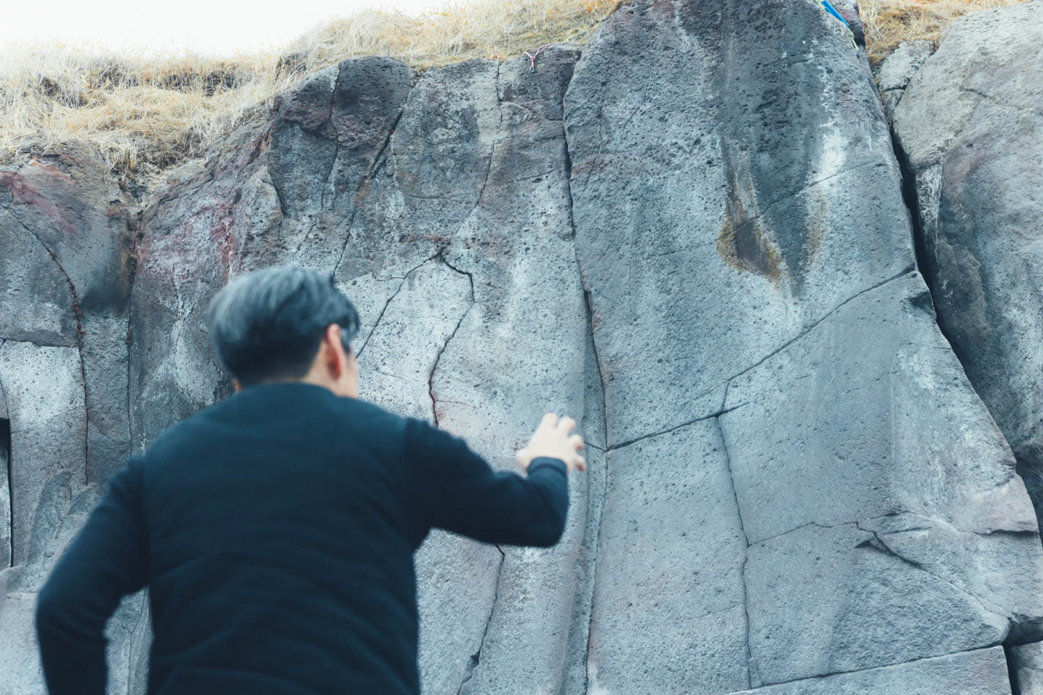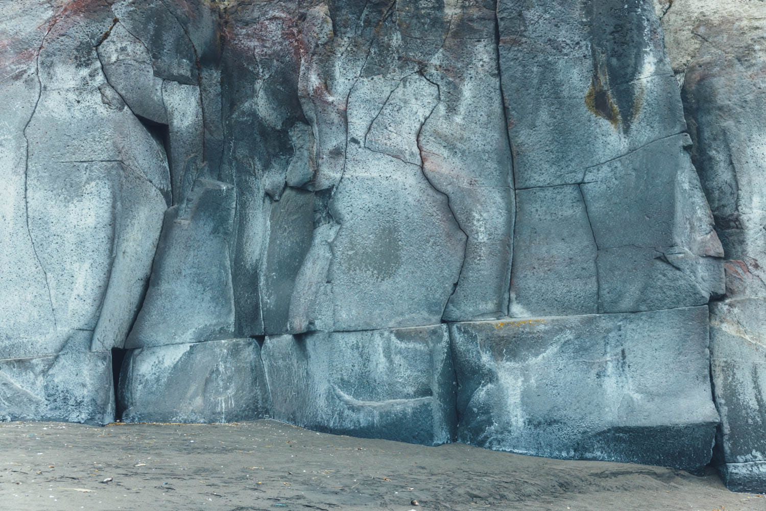 すごいですよね。この断崖は、何万年も前に俱多楽火山が噴火し、流れてきた溶岩や火山灰が作った地形だそうです。色や質感の違う層が積み重なっていて、それが剥き出しになっているのが面白い。こういう景色を見ていると、直線の亀裂は溶岩が冷えた時に入ったんだろうなとか、昔はここまで海水面があったんだろうなとか、とてつもない時間の積み重ねを感じます。このあたりはかつて「アヨロ」と呼ばれていた地域で、縄文時代の土器や遺跡も発掘されているんですよ。