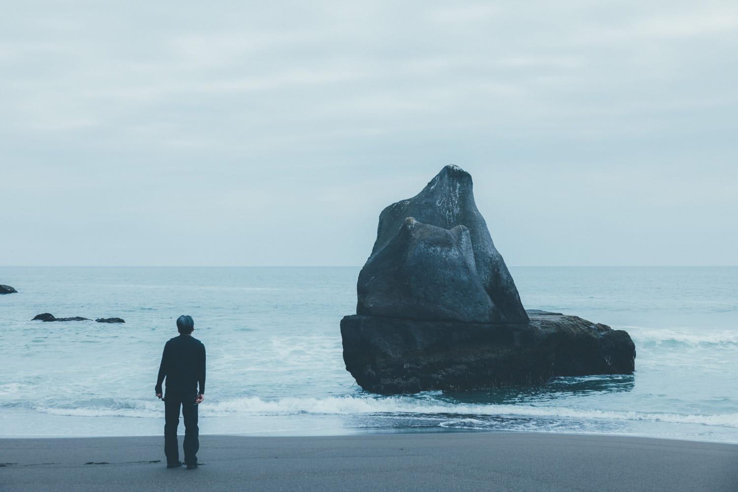 ふと行きたくなった時に足を運ぶ。海の少し先に見える大きな岩が好きで、なんだろう……あの岩に会いに来る、みたいな感覚でしょうか。夕焼けがきれいな日は空の色に目が奪われるけれど、曇っている時は岩の形やボリューム感がくっきりと見えてくる。すぐそこにあるように感じる時もあれば、波が満ちている日などは、ものすごく遠くに存在しているように感じます。