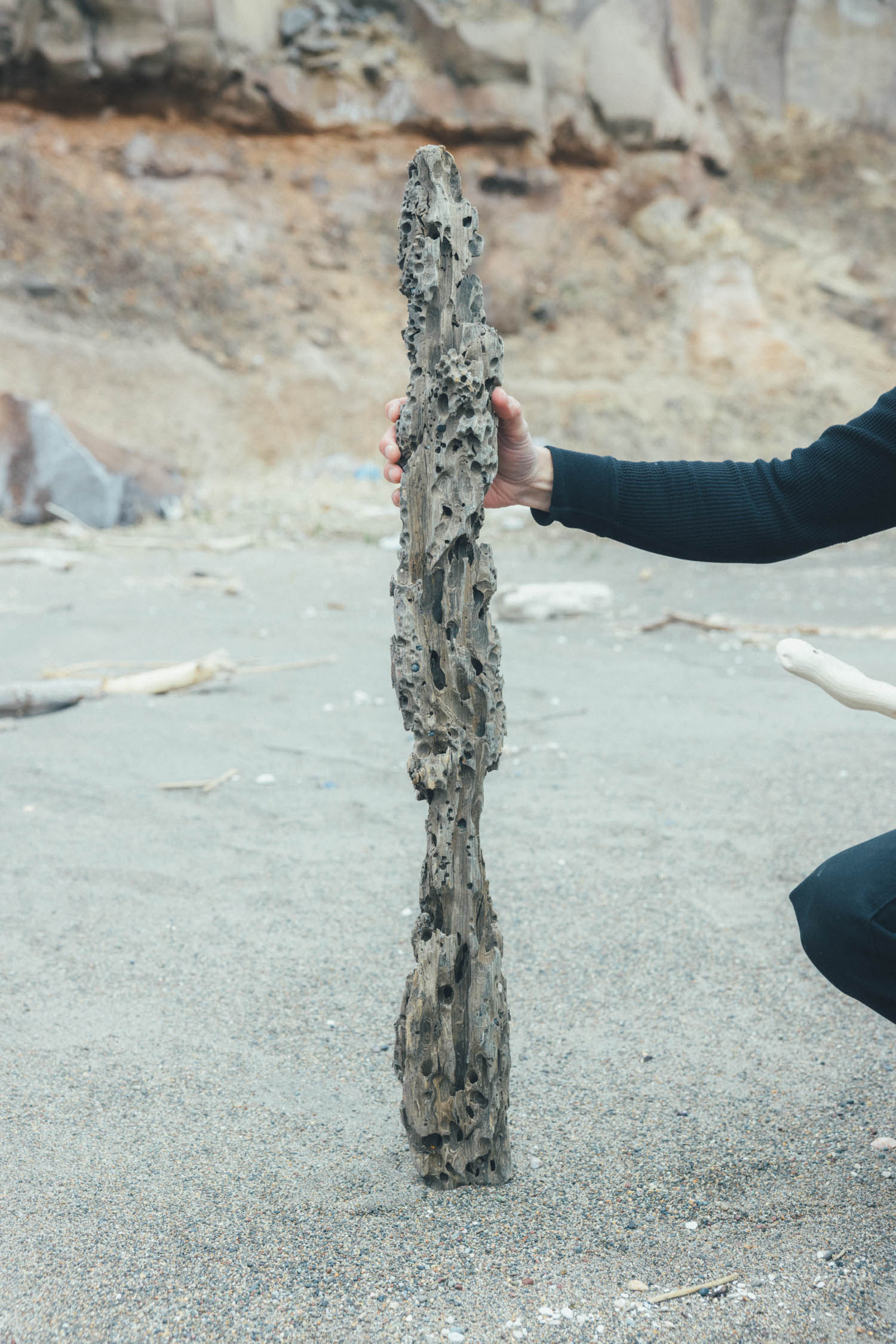 気になる流木を発見! 虫に食い尽くされることで生まれた穴が独特な造形をしていた