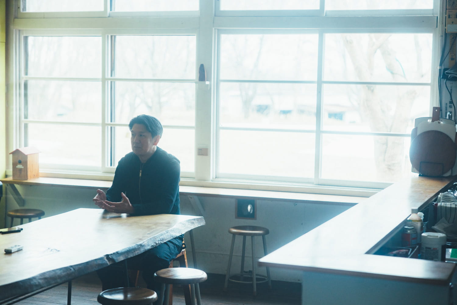 飛生での暮らしは20年を超えました。いつもは一人で木と向かい合って制作していますが、この場所があるからものづくりもできるし、人との交流も生まれ広がっている。彫刻制作に息を吹き込んでくれる‶B面〟も含め、すべての根底に飛生という土地への想いが息づいているような気がします。