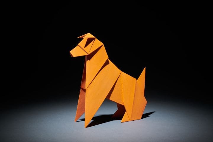 白谷琢磨 『神犬-橙- 』 木彫彩色 21×20×6.5㎝ 2025