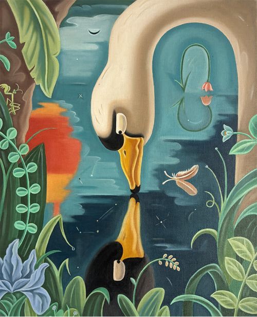 高瀬栞菜「White Faces Black(Bird)」H65.2×W53×D2㎝ oil on canvas 2025年