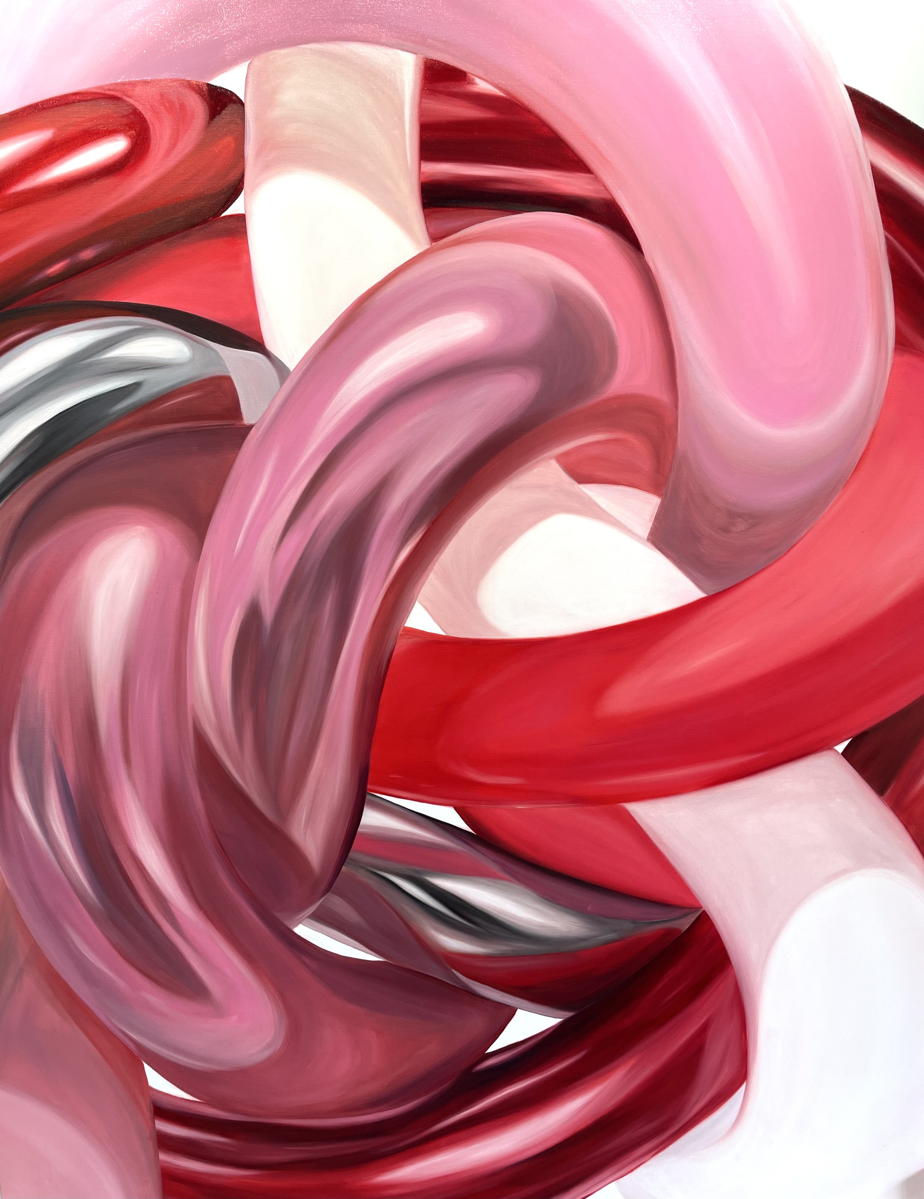 「Neighboring Balloons - Metallic Pink & Silver」H1620mm × W1303mm × W30mm Oil on canvas