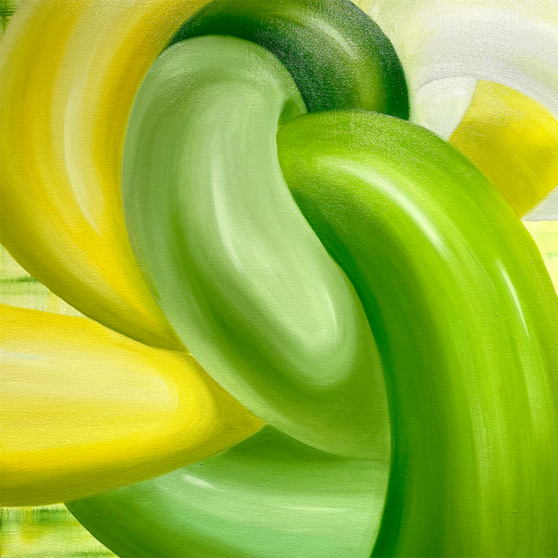 「Neighboring Balloons - Yellow Green & Yellow」H410mm × W410mm × W40mm Oil on canvas