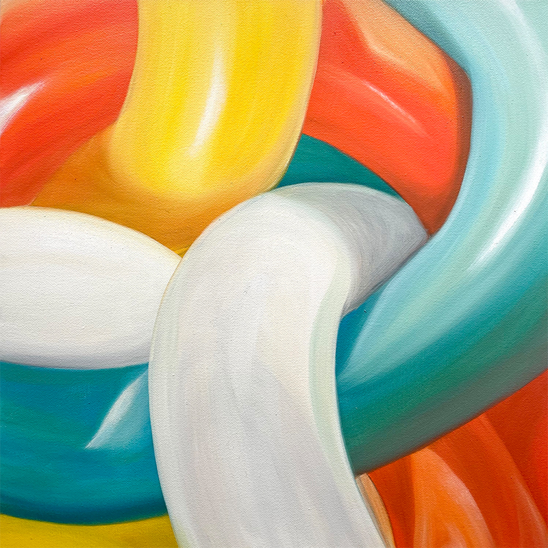「Neighboring Balloons - Orange & Sky Blue」H410mm × W410mm × W40mm Oil on canvas